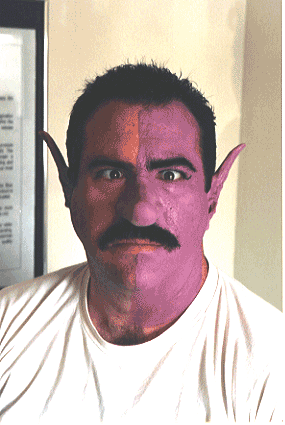 Durflinger halfway through the make-up process. It
